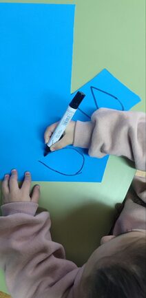 Para la realización de esta actividad hemos tenido que seleccionar la plantilla de la gota con la que vamos a trabajar. Posteriormente hemos buscado los materiales con los que vamos hacer las gotas siendo en este caso cartulina y folios de colores en diferentes tonos de azul. Después de todo esto nuestro alumnado debe de escribir una palabra sinónima a “PAZ”, posteriormente, recortar la gota para poder colgarlas con el hilo de seda.